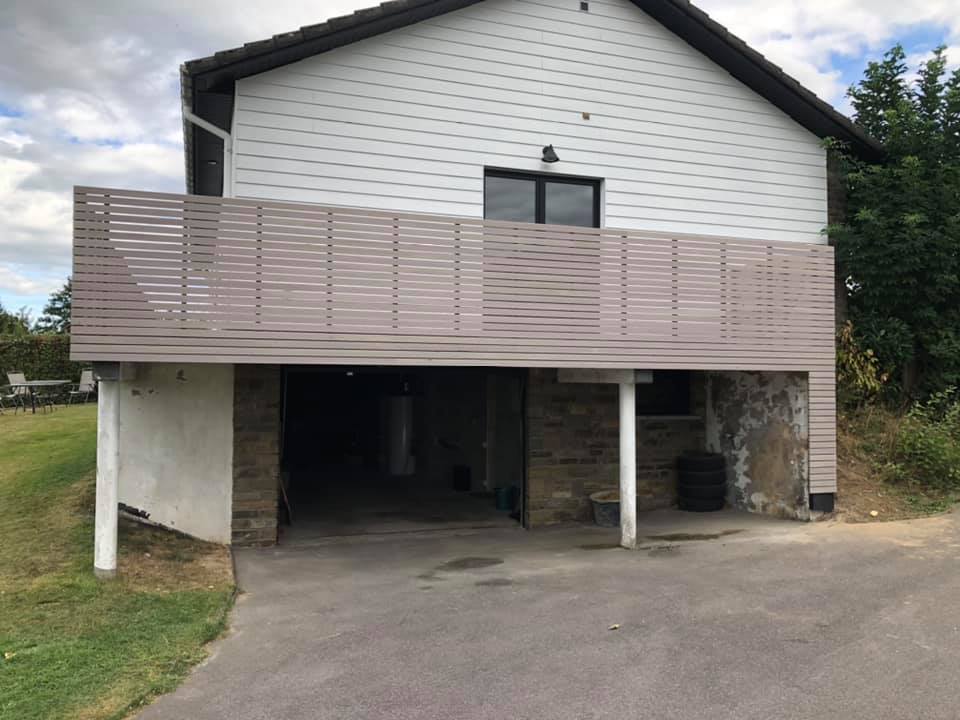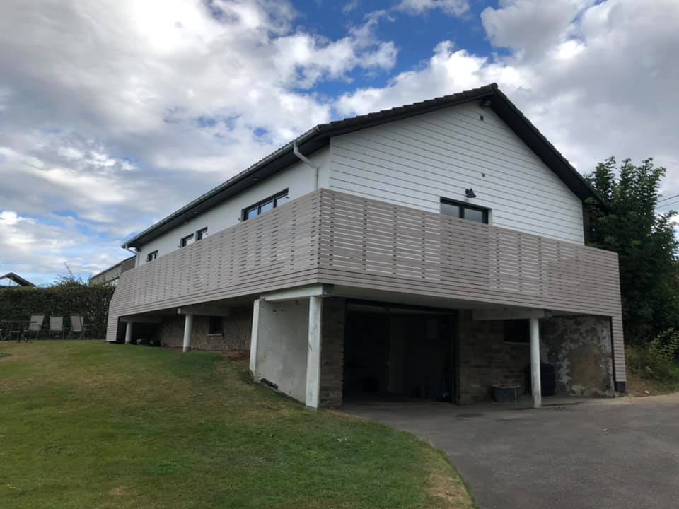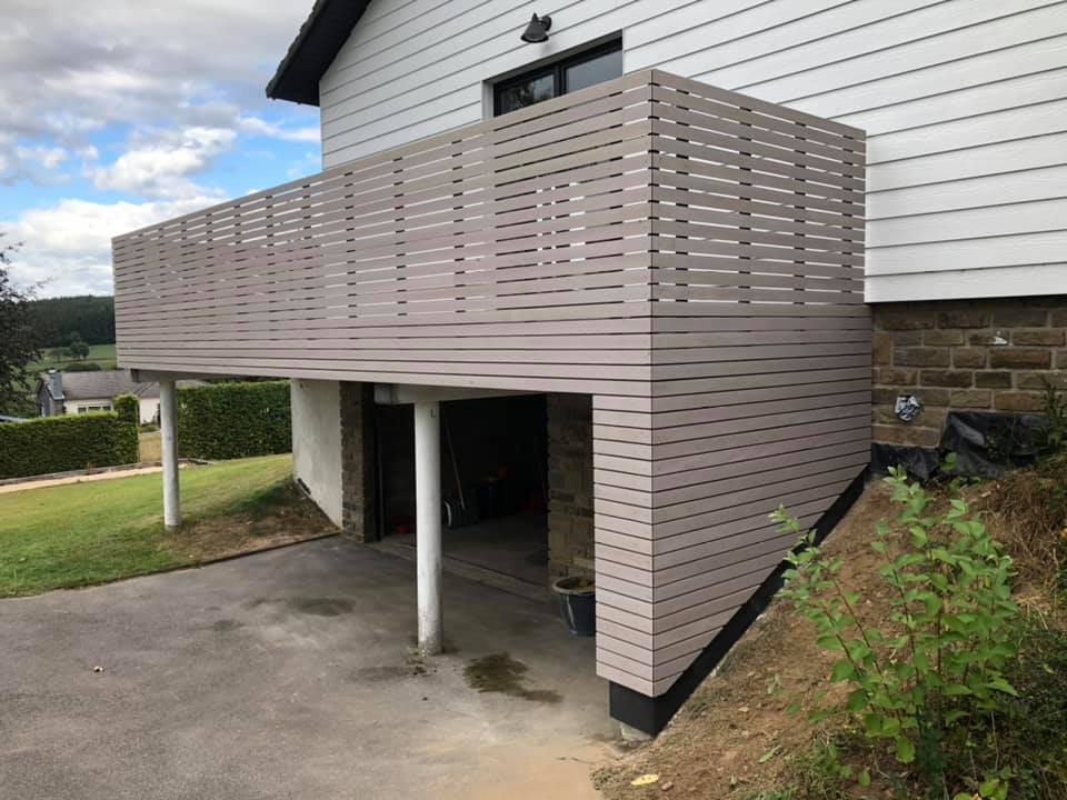 Garde-corps en bardage ajouré Dura Patina gris lave Menuiserie intérieure et extérieure