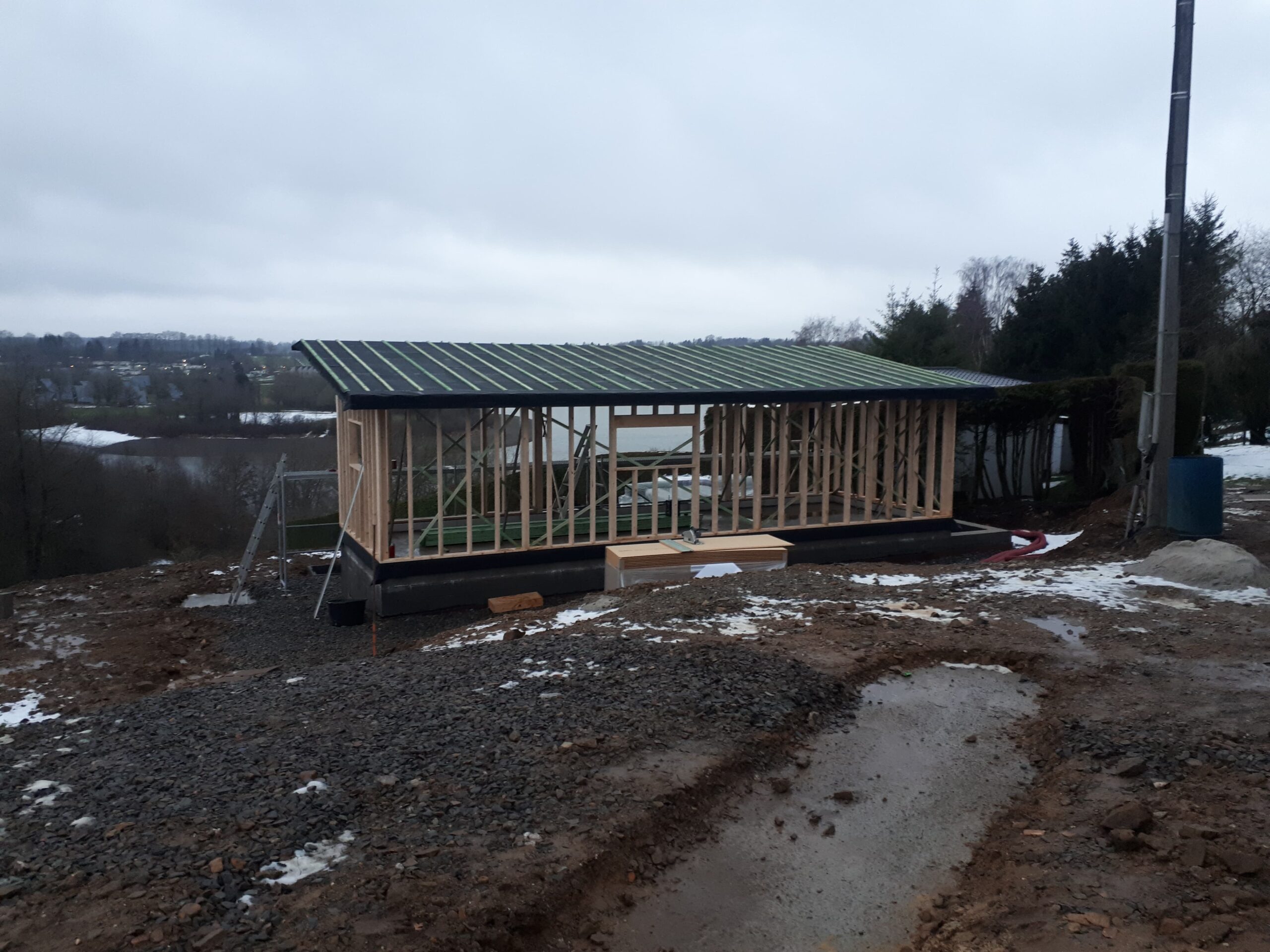 Réalisation d’un chalet de vacances Ossature bois, Charpente et Toiture, Menuiserie intérieure et extérieure